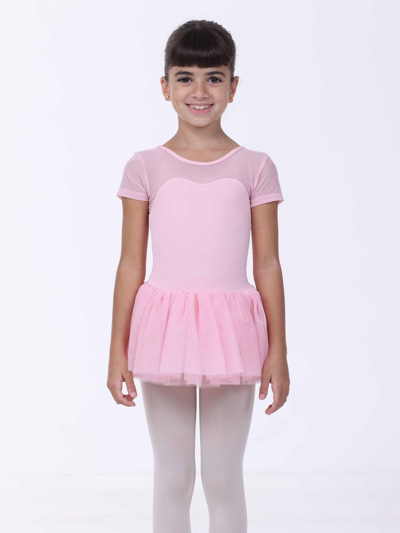 Robe de danse pour fille rose clair – buste en tulle transparent et jupe courte évasée.