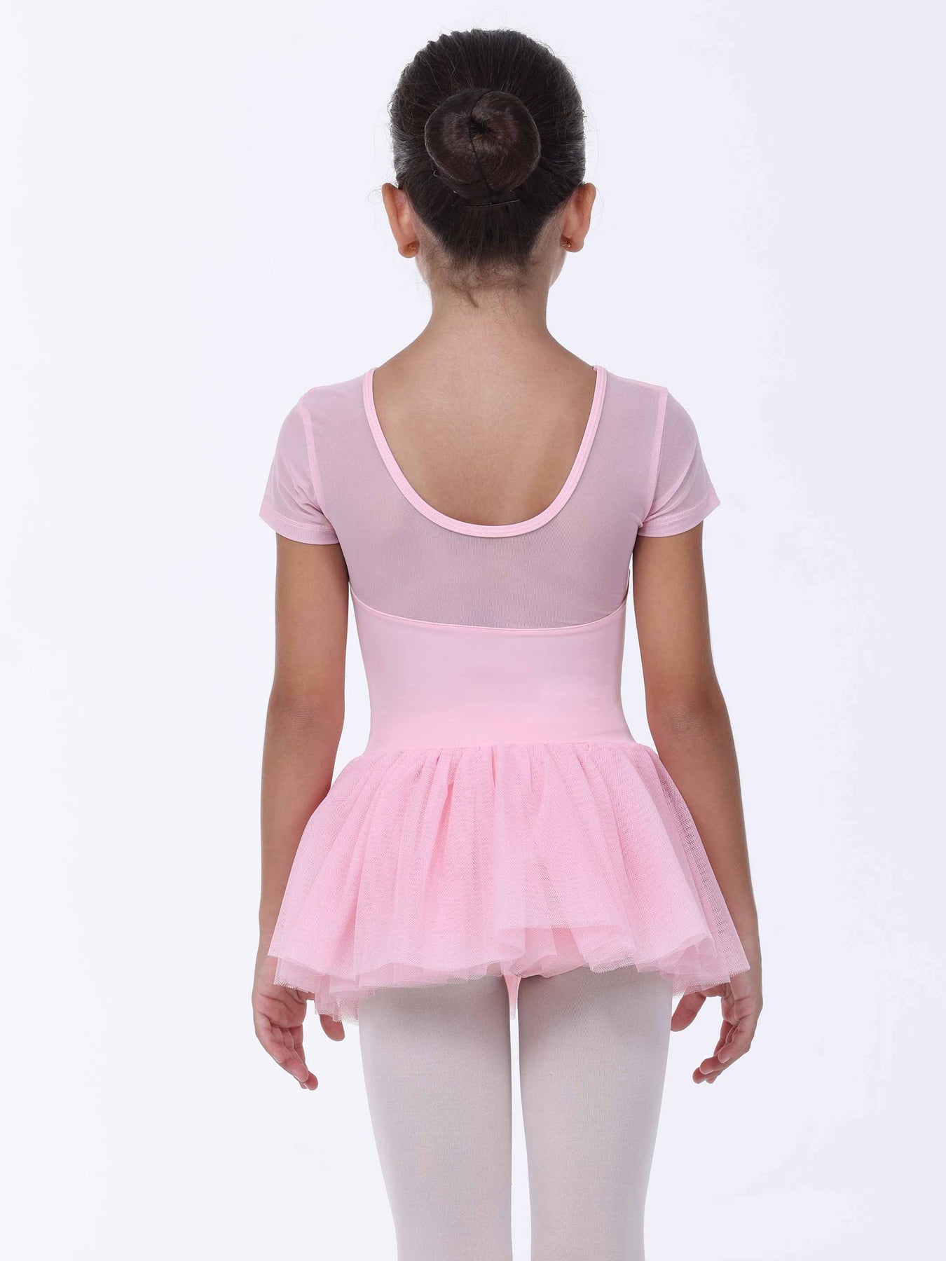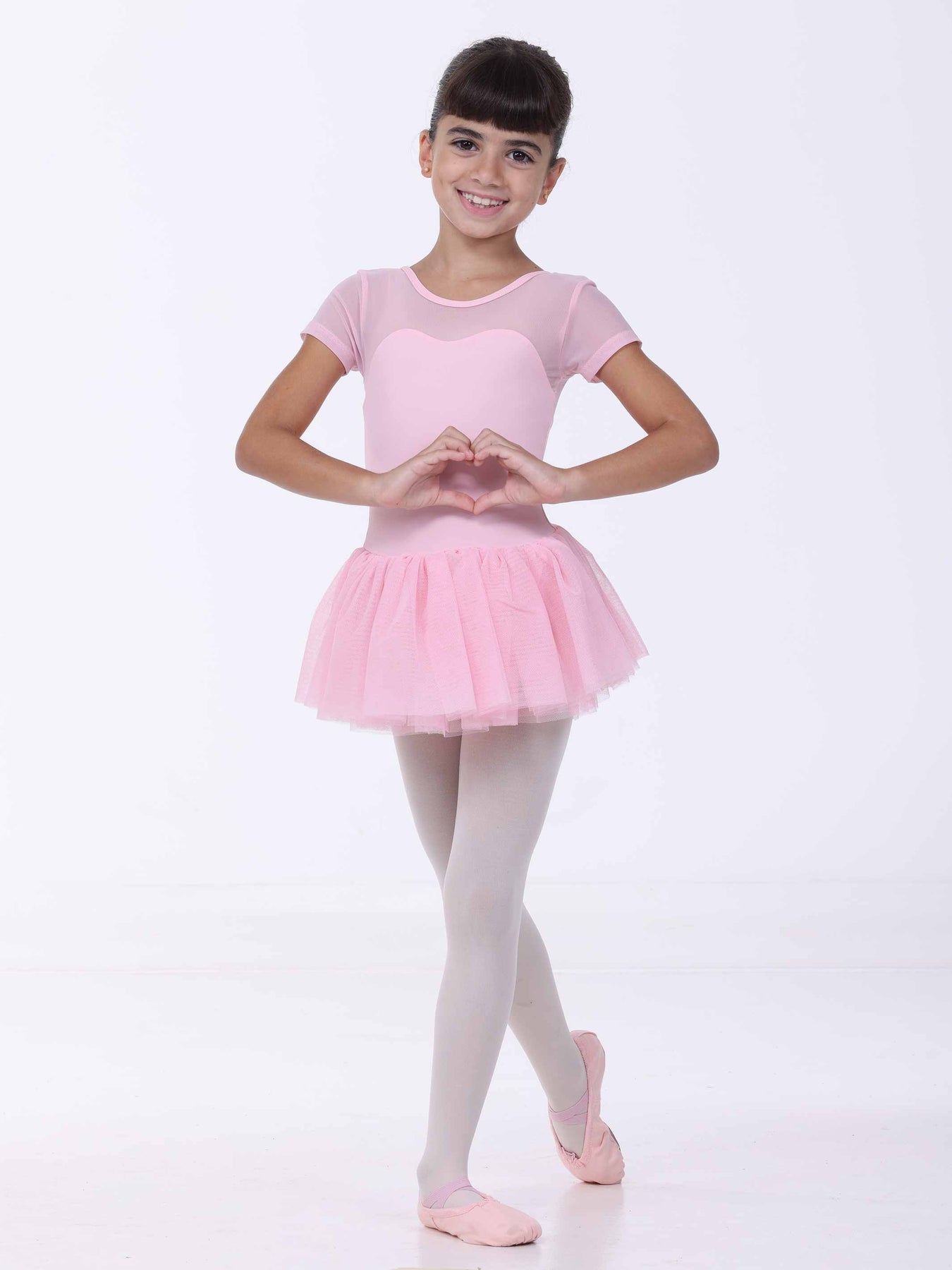 Robe de danse rose clair pour fille – manches courtes en tulle et buste forme cœur.